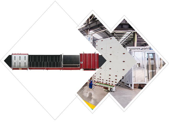 玻璃合片時平壓機前后箱機械手杠桿式托料,(機械式硬限位+活動板吸盤吸附)確保自動合片時玻璃永不錯位。清洗箱 風(fēng)干箱 風(fēng)刀等全不銹鋼制作,外形美觀大方,永不銹蝕。